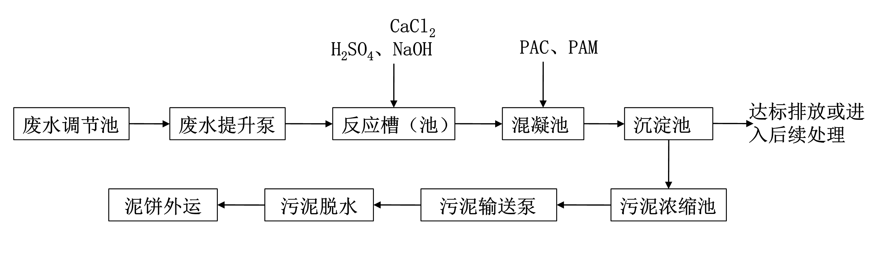 表1:含氟廢水常用處理工藝流程
