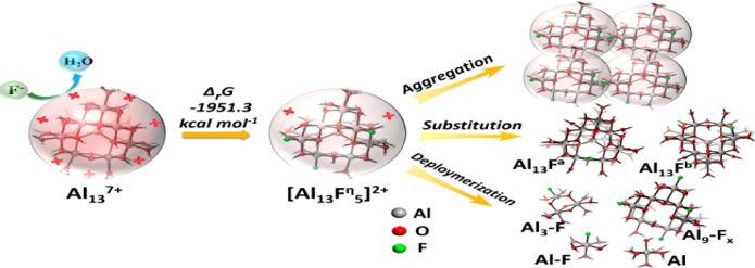 由于F-和OH-的離子半徑和電荷都十分接近,[Al13O4(OH)24]7+的部分OH-能夠與F-產(chǎn)生離子交換,最后得到Al13Fn(OH)m沉淀。