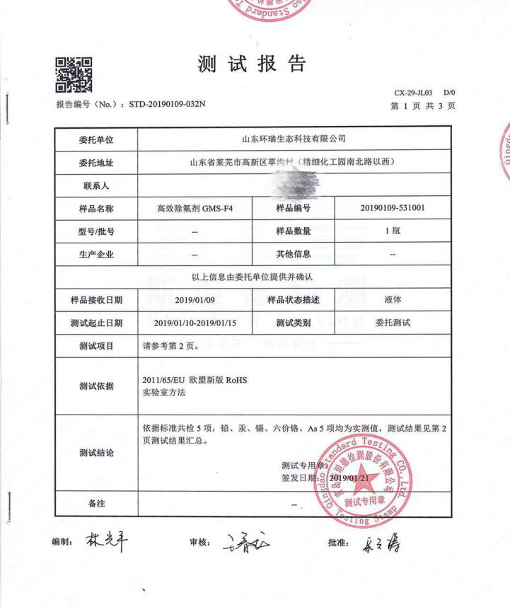 山東環瑞生態的除氟劑,每一個產品都有自己的第三方檢測報告,使用起來安全、可靠,產品質量有保障。