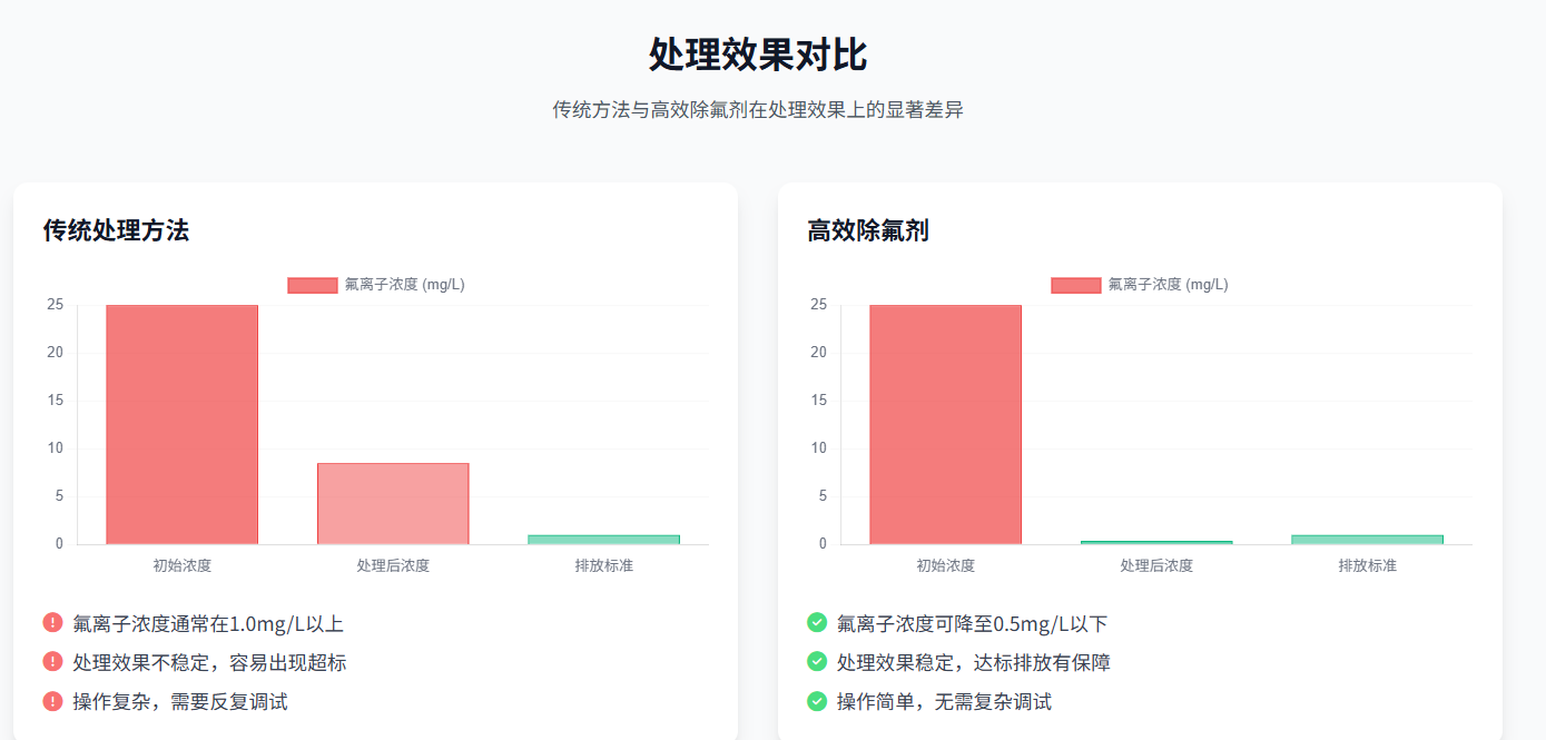 含氟廢水并不總是超標,但如果不采取有效的處理措施,確實容易出現超標問題。而高效除氟劑的出現,為解決這一問題提供了可靠的技術手段,能夠實現“一招制敵”,即通過精準投加除氟劑,快速、穩定地去除廢水中的氟離子,確保排放達標。